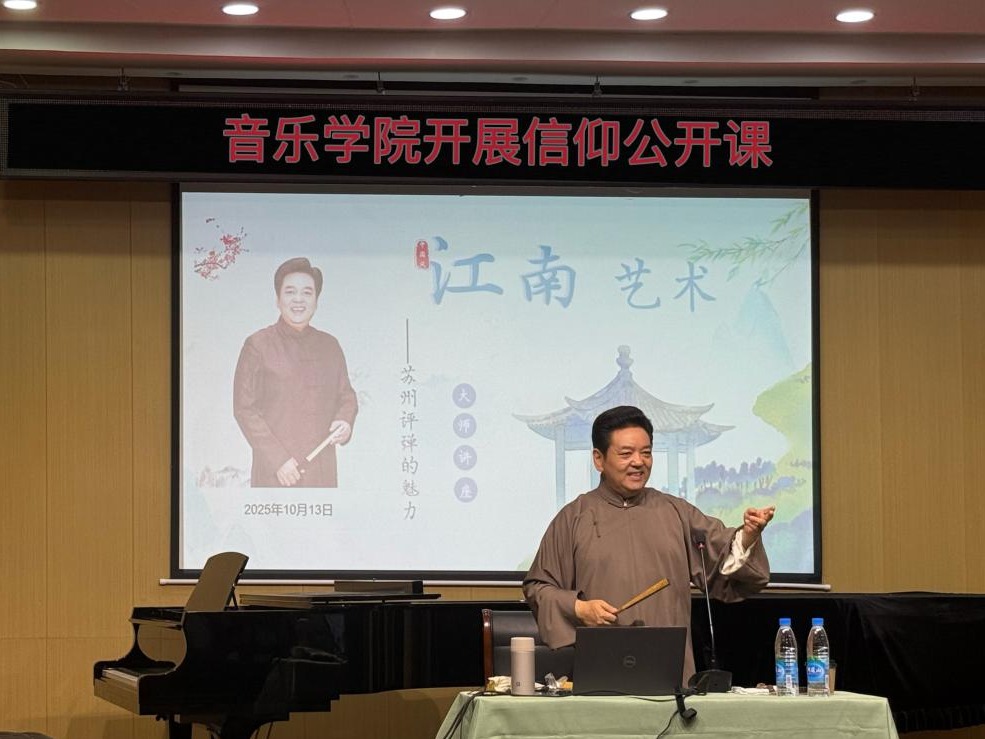为坚定师生理想信念,传承红色文化基因,2025年10月13日下午,音乐学院精心策划的信仰主题公开课在学院演播厅隆重举行。本次公开课特邀国家一级演员、苏州评弹团名家王池良先生担任主讲,吸引了众多师生到场聆听,深研习近平文化思想之时代精粹与实践伟力,为践行新时代文化使命,筑牢信仰之基。