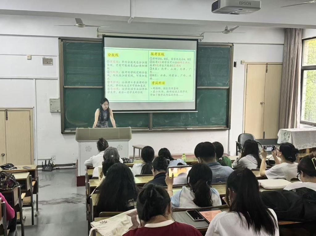 在随后的互动答疑环节,现场气氛热烈。同学们就跨专业报考难度、专业课重点把握、备考期间学业平衡、面试常见问题等个性化困惑积极提问。王若萍同学一一耐心解答,提供了诸多宝贵的“过来人”视角与针对性建议,有效消除了同学们的迷茫与焦虑。