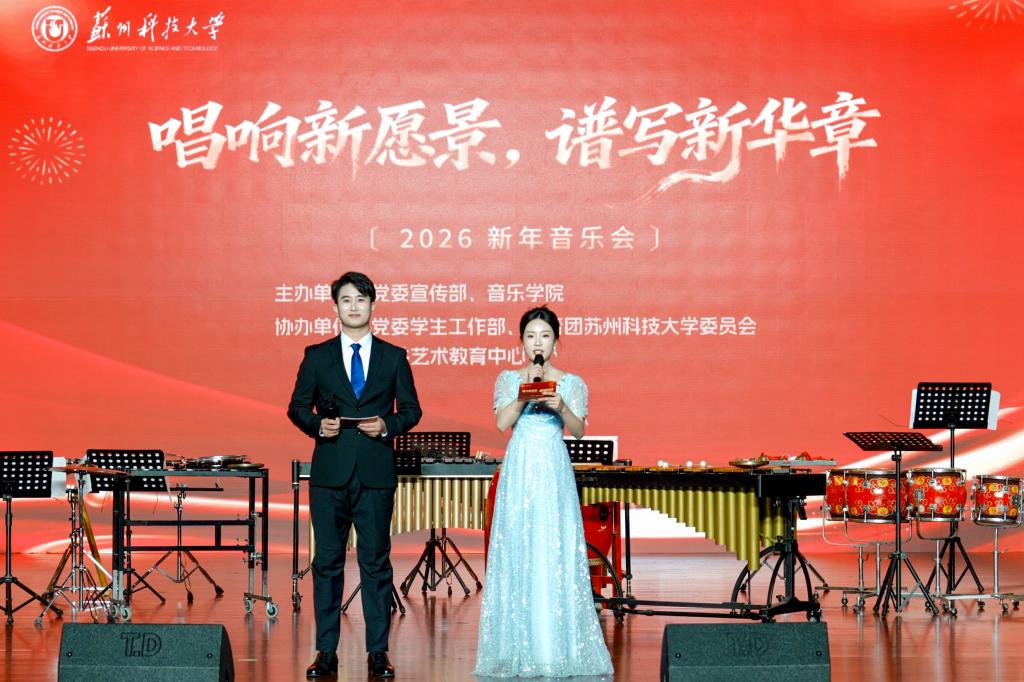 12月30日晚,我校“唱响新愿景 谱写新华章”2026新年音乐会在石湖校区音乐厅举行。苏州市教育局副局长赵鸣、体育局副局长程军红、文联副主席冷建国,我校党委书记姜朋明,党委副书记洪晔,党委常委、副校长崔雪丽、温波、孙士俊、何湘江出席音乐会。相关职能部门和教学单位负责人、师生代表等参加音乐会,共赏一场浸润心灵的艺术盛宴。