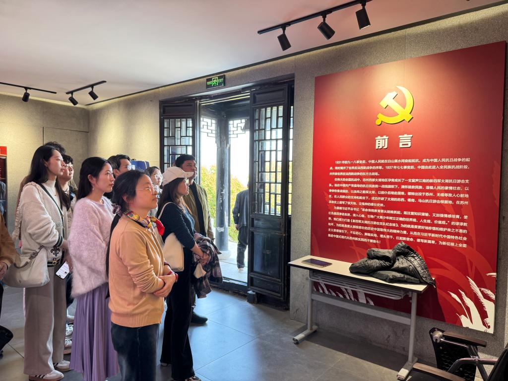 新四军太湖游击队纪念馆作为重要的红色教育基地,承载着太湖地区抗日军民英勇奋战的光辉历史。在专业讲解员的细致引导与生动讲解下,全体党员有序走进纪念馆各个展厅。展厅内,通过历史照片和革命文物,师生党员沉浸式感受新四军太湖游击队在极端艰苦的战争环境下,不畏强敌、浴血奋战,深入太湖水域开展游击战争、顽强抗击日本侵略者、誓死保卫家乡与人民的英雄事迹。